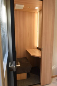 フォーンブースが3つあり、個室タイプのデスクは、周囲の視線や音をシャットアウト。