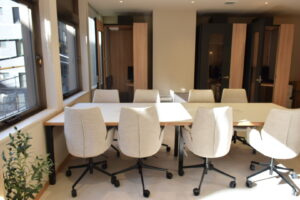 新オフィスには用途に合わせた複数タイプの会議室があります。